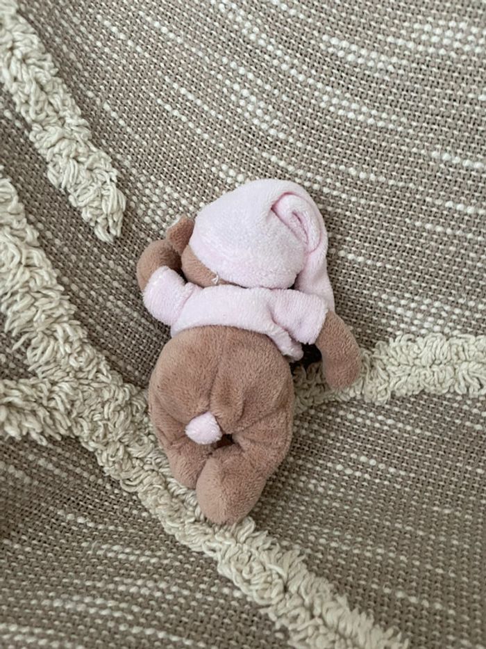 Peluche doudou mini nattou ours marron et rose très bon état - photo numéro 3