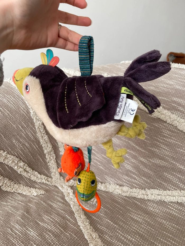 Peluche doudou d’éveil 26cm moulin roty dans la jungle toucan violet parfait état - photo numéro 6