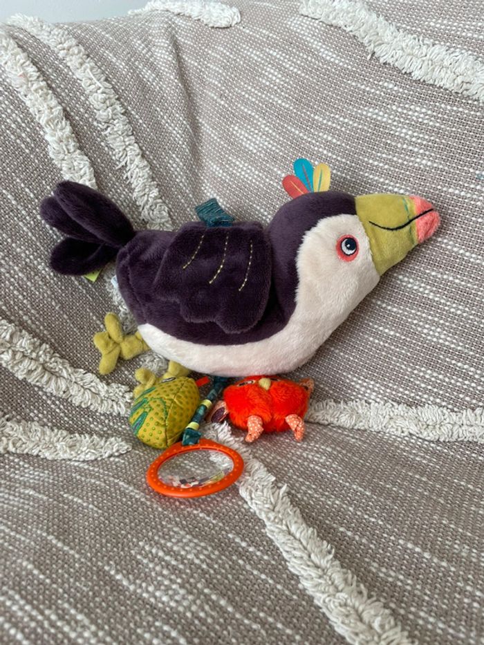 Peluche doudou d’éveil 26cm moulin roty dans la jungle toucan violet parfait état - photo numéro 1