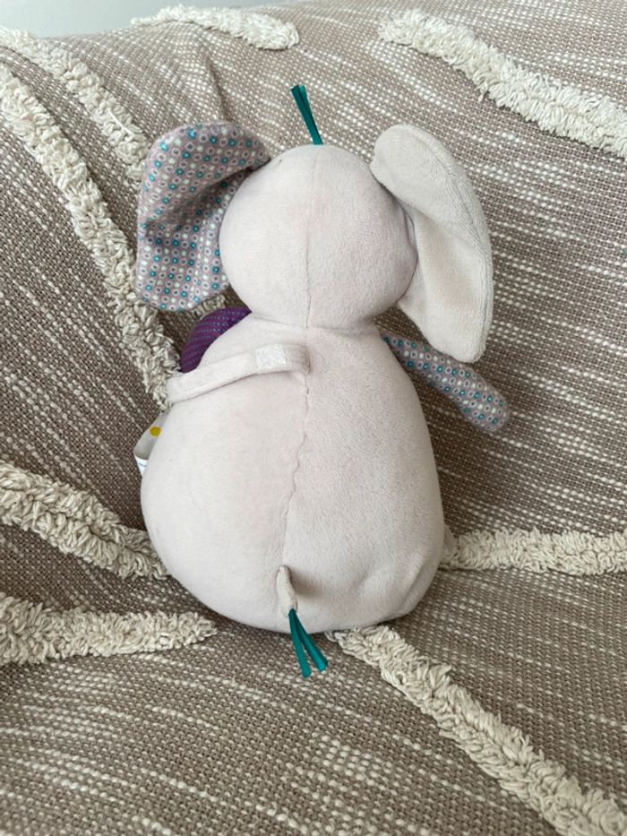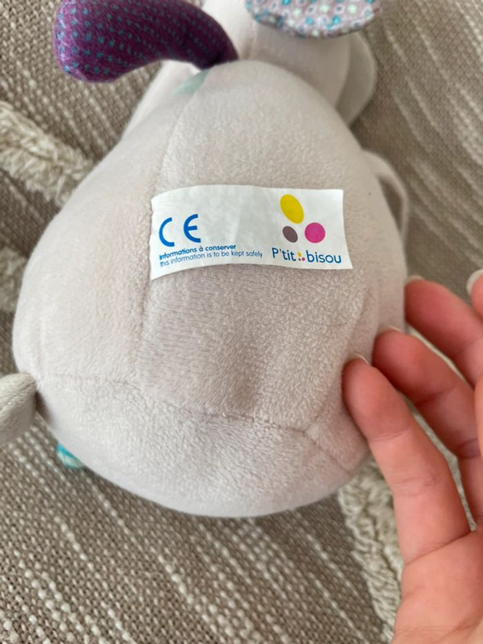 Peluche doudou musical 25cm p’tit bisou éléphant gris et blanc très bon état - photo numéro 4