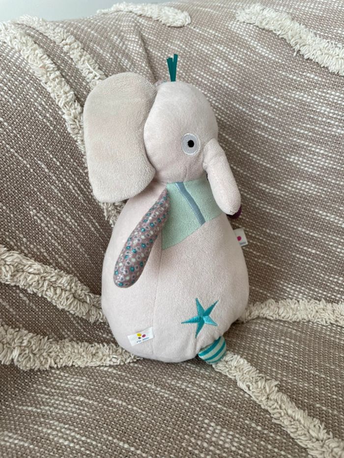 Peluche doudou musical 25cm p’tit bisou éléphant gris et blanc très bon état - photo numéro 1