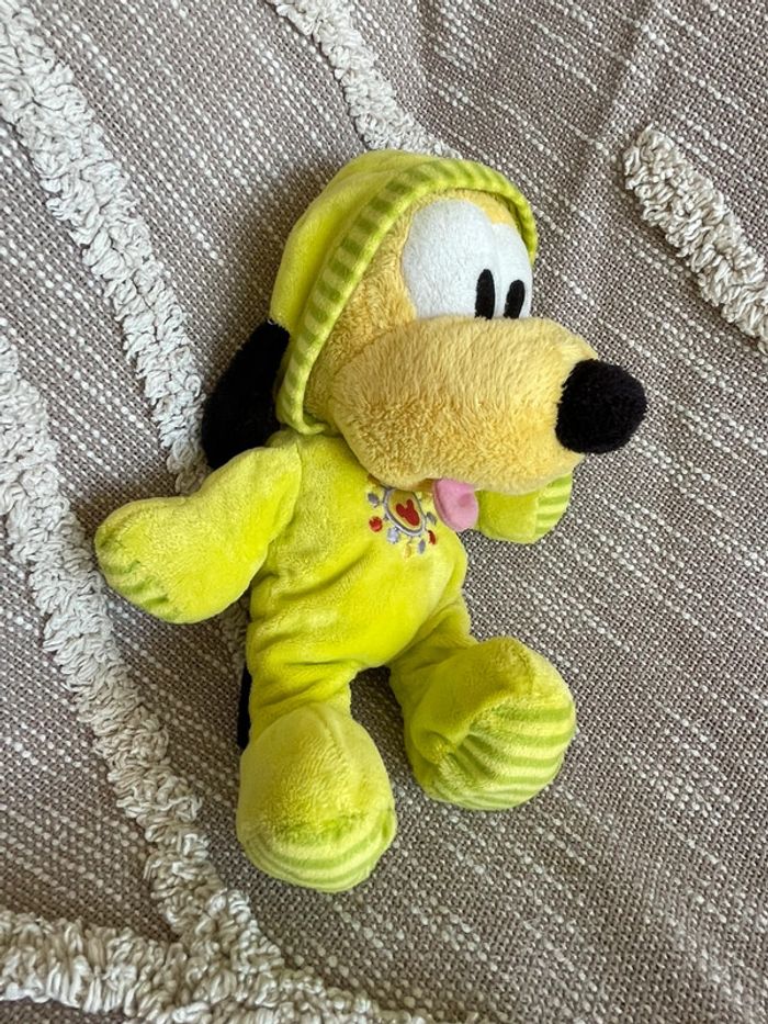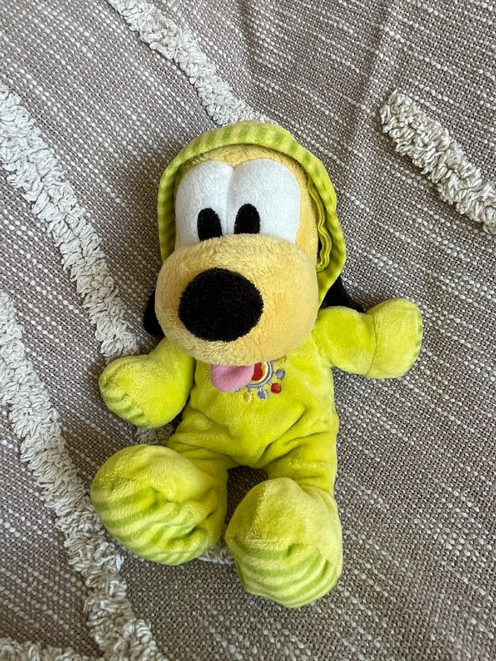 Peluche doudou 26cm Disney pluto chien Mickey jaune et vert très bon état - photo numéro 1