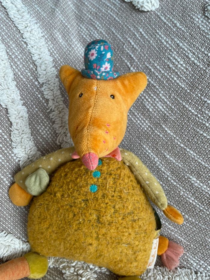 Peluche doudou musical 28cm moulin roty les tartempois renard roux orange et jaune parfait état - photo numéro 1