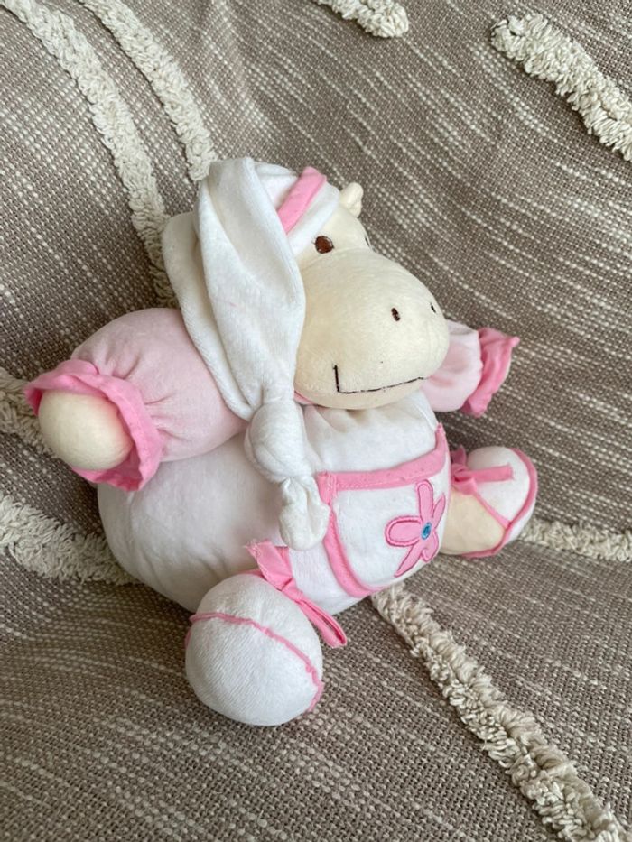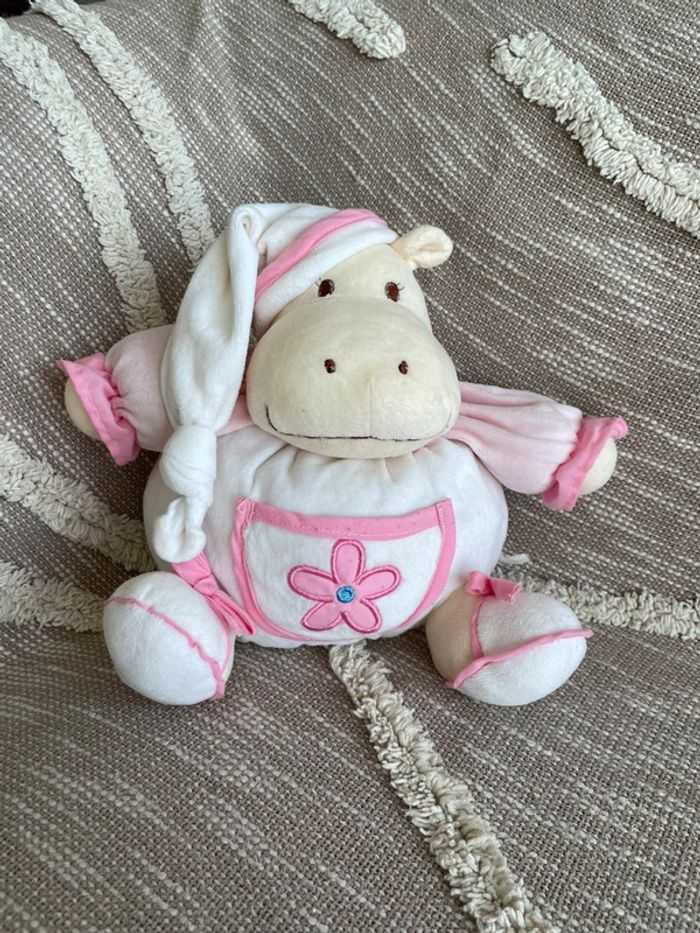 Peluche doudou boule 27cm MGM Dodo d’amour hippopotame rose beige blanc très bon état