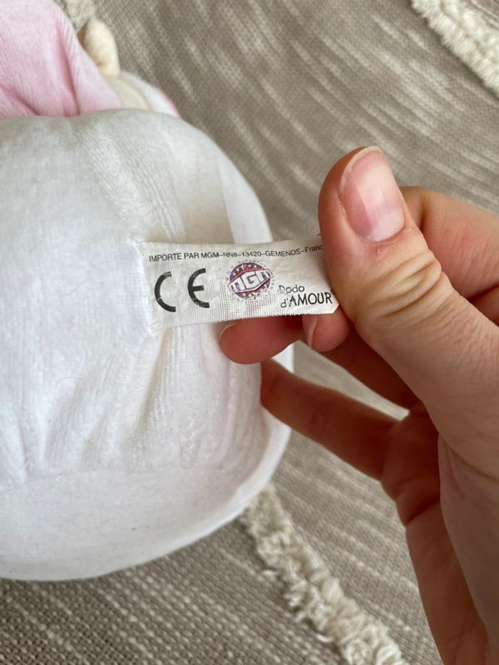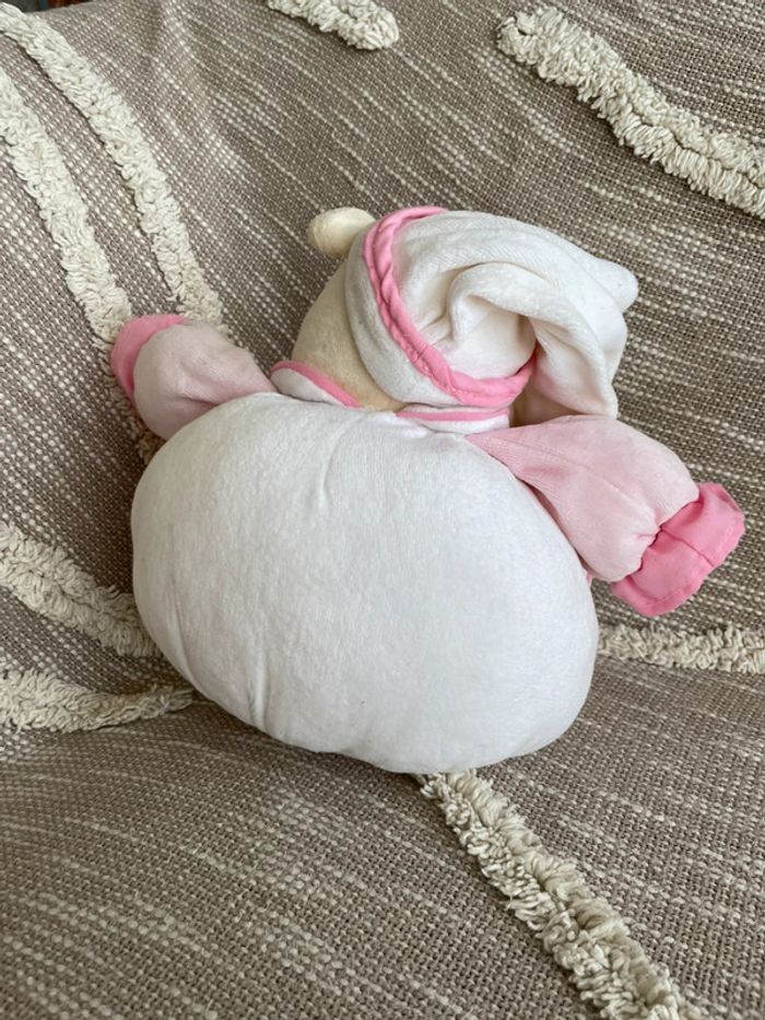 Peluche doudou boule 27cm MGM Dodo d’amour hippopotame rose beige blanc très bon état - photo numéro 4