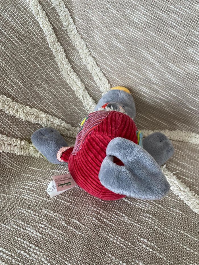 Peluche doudou d'éveil 26cm Lilliputiens loup gris et rouge à rayures parfait état - photo numéro 4