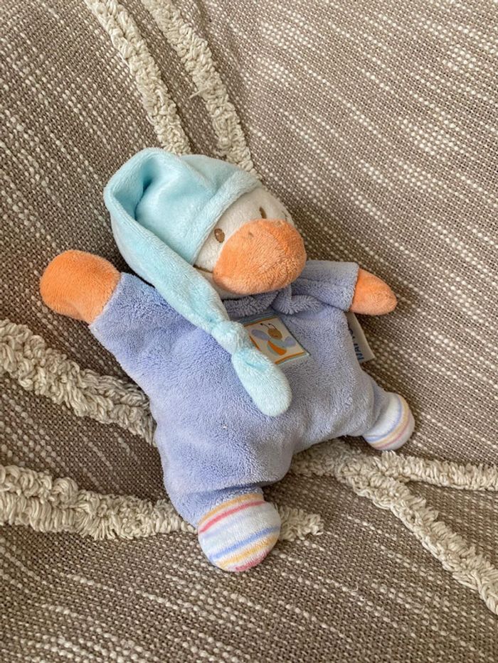 Peluche doudou 25cm Nattou Canard bleu et orange les z'amis très bon état - photo numéro 2