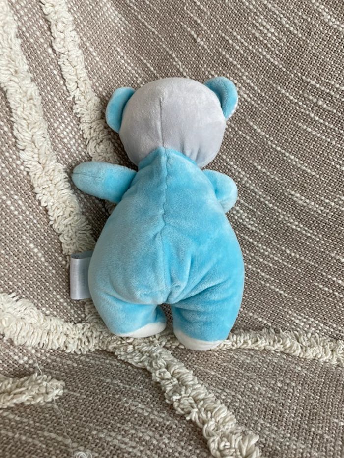 Peluche doudou 20cm Tom et kiddy ours gris et bleu très bon état - photo numéro 4