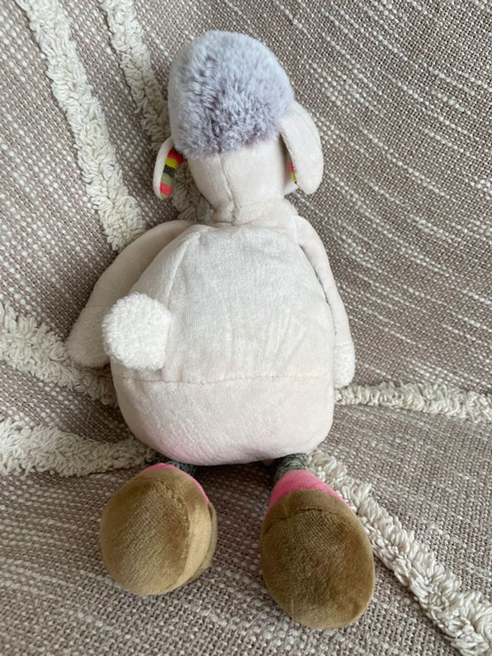 Peluche doudou 32cm moulin roty mouton brebis beige gris et rose vert très bon état - photo numéro 4