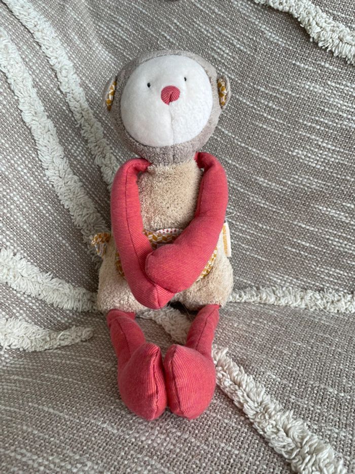Peluche doudou d’éveil 35cm moulin roty les Papoum singe d’activité très bon état - photo numéro 2