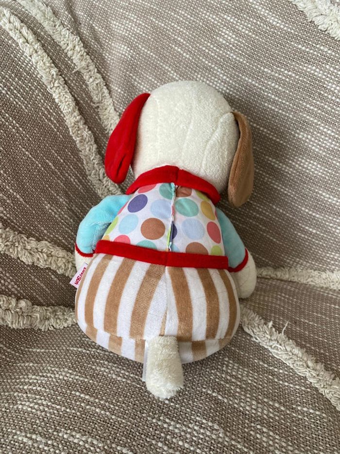 Peluche doudou d'éveil 35cm BabySun chien bleu blanc marron a pois et rayure très bon état
