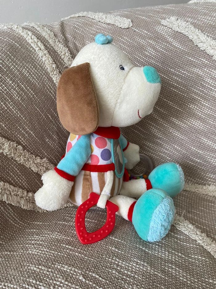 Peluche doudou d'éveil BabySun chien bleu blanc marron et rouge a pois et rayure Anneaux et miroir très bon état 25cm assis 35cm debout #mimidoudoubabysun #mimidoudoueveil #mimidoudouchien Sur mon dressing , remise de : ☺️ -10% dès 2 articles achetés, 😊 -15% dès 3 articles achetés, 😃 -20% dès 5 articles achetés, 🤩 -25% dès 10 articles achetés. ✨ Tout les doudous sont lavés, propre et sans défaut. 🛍️ Si vous souhaitez un lots vous pouvez le créer directement sur mon profil en cliquant sur « acheter un lot » puis je vous ferais l’offre avec les remises qui s’appliquent. 🚭 Foyer NON FUMEUR. 📬 Envoi rapide sous 1-4 jours ouvré. #peluche #peluches #doudous #doudou #eveil #doudouperdu #bebe #bebes #enfants #enfant #puericulture #recherche #nounours #ninnin #maman #jouet #jouets #sosdoudou #chien #babysun