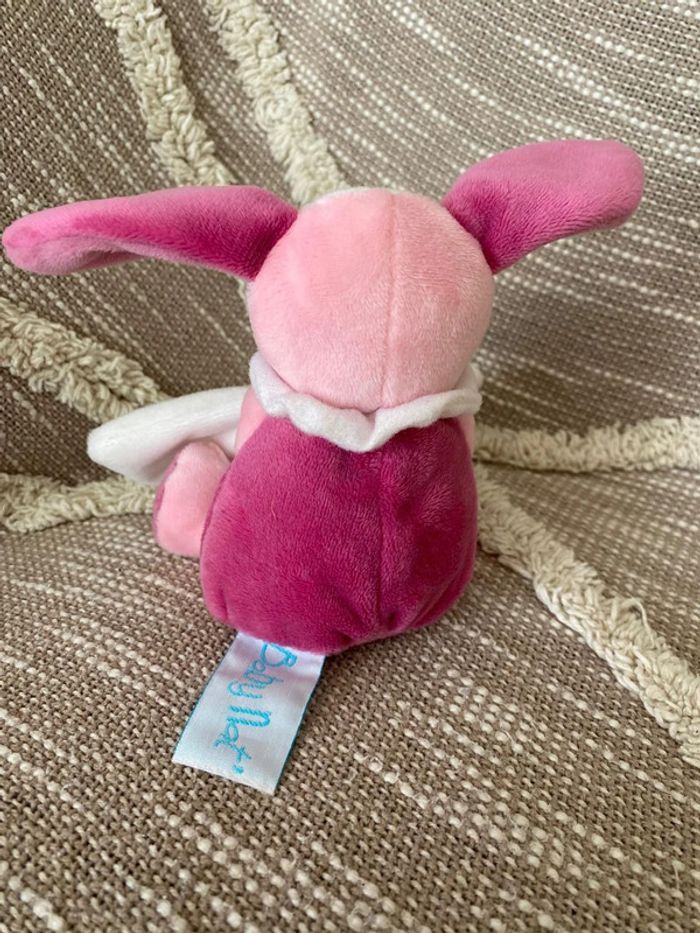 Peluche doudou mouchoir 16cm Babynat lapin rose et blanc étoile filante parfait état - photo numéro 4