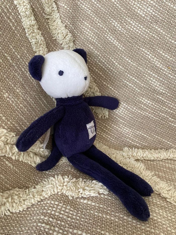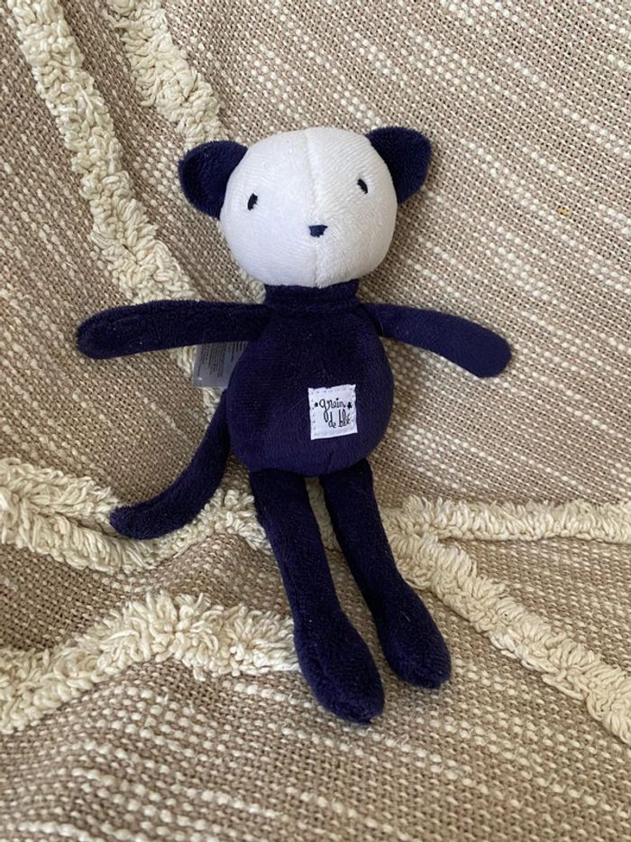 Peluche doudou 23cm grain de blé ours souris bleu noir et blanc très bon état - photo numéro 4