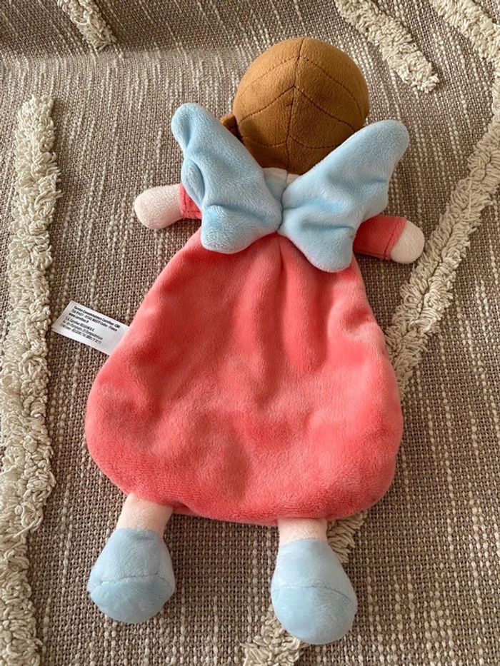 Peluche doudou plat 34cm Tex poupée fée ailes brune beige et rose saumon très bon état