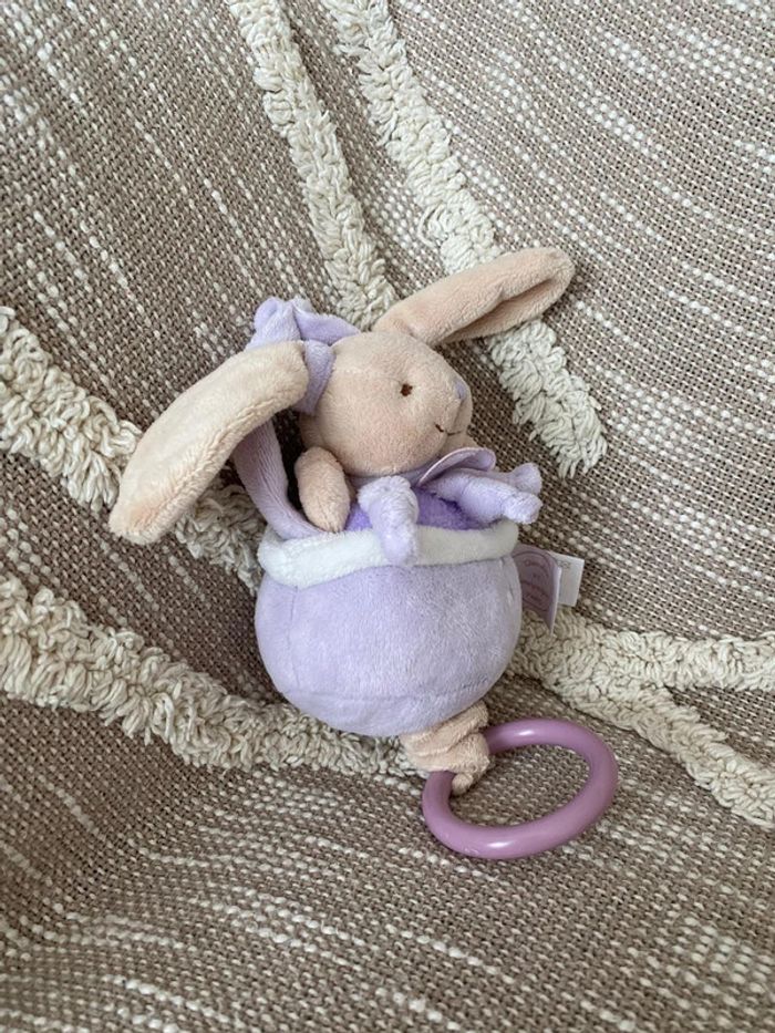 Peluche doudou et compagnie musical 17cm montgolfière lapin beige et violet très bon état