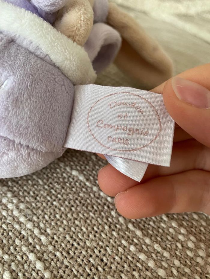 Peluche doudou et compagnie musical 17cm montgolfière lapin beige et violet très bon état - photo numéro 4