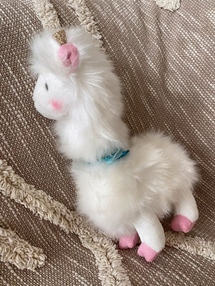 Peluche doudou 26cm histoire d’ours lama blanc rose bleu parfait état