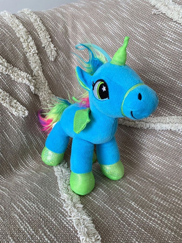 Peluche doudou 22cm my little Pony Licorne poney bleu aile verte parfait état