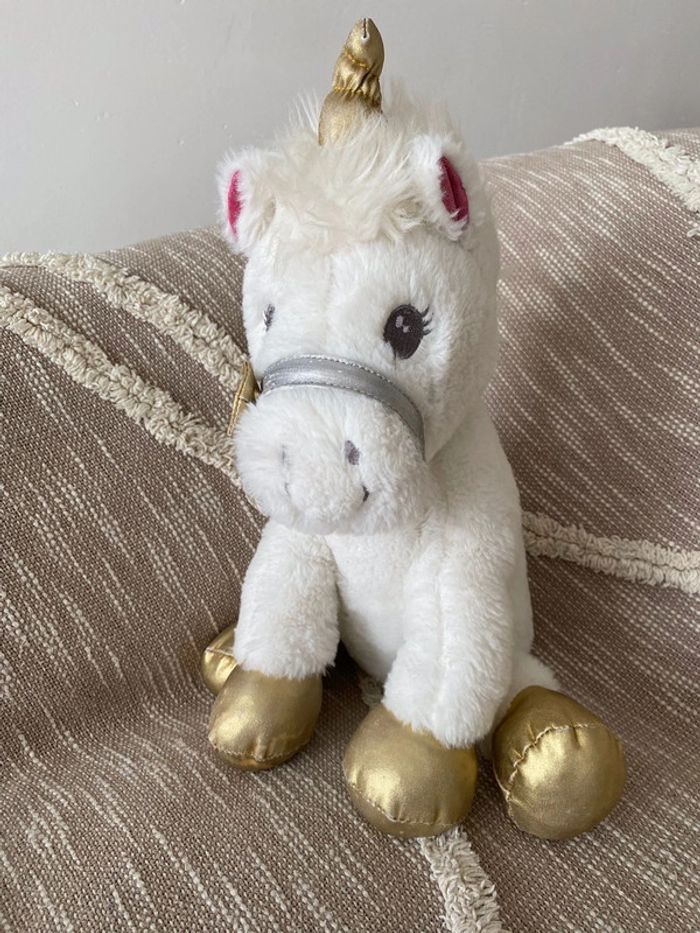 Peluche doudou 40cm Animals Adventure Licorne blanche et doré parfait état