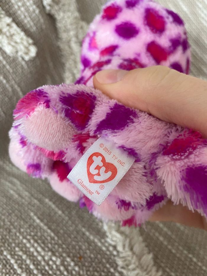 Peluche doudou 17cm  TY guépard jaguar rose violet très bon état - photo numéro 4