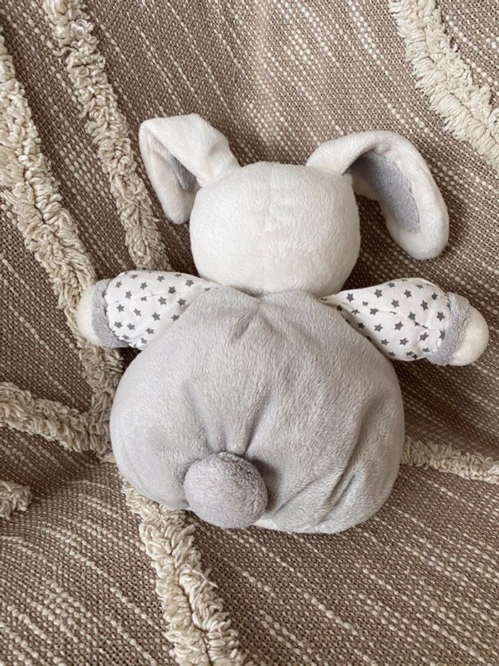Peluche doudou boule 22cm Obaïbi lapin blanc et gris étoile très bon état - photo numéro 4