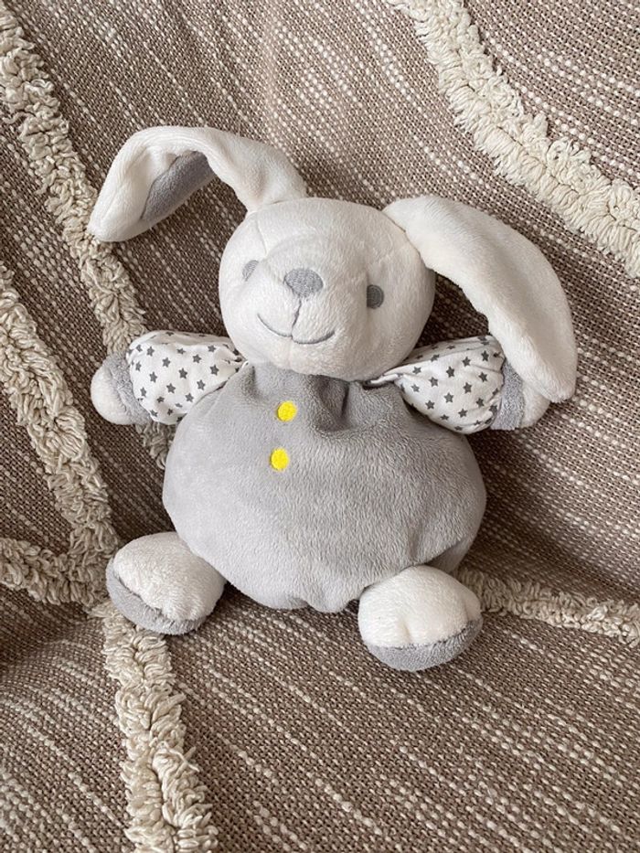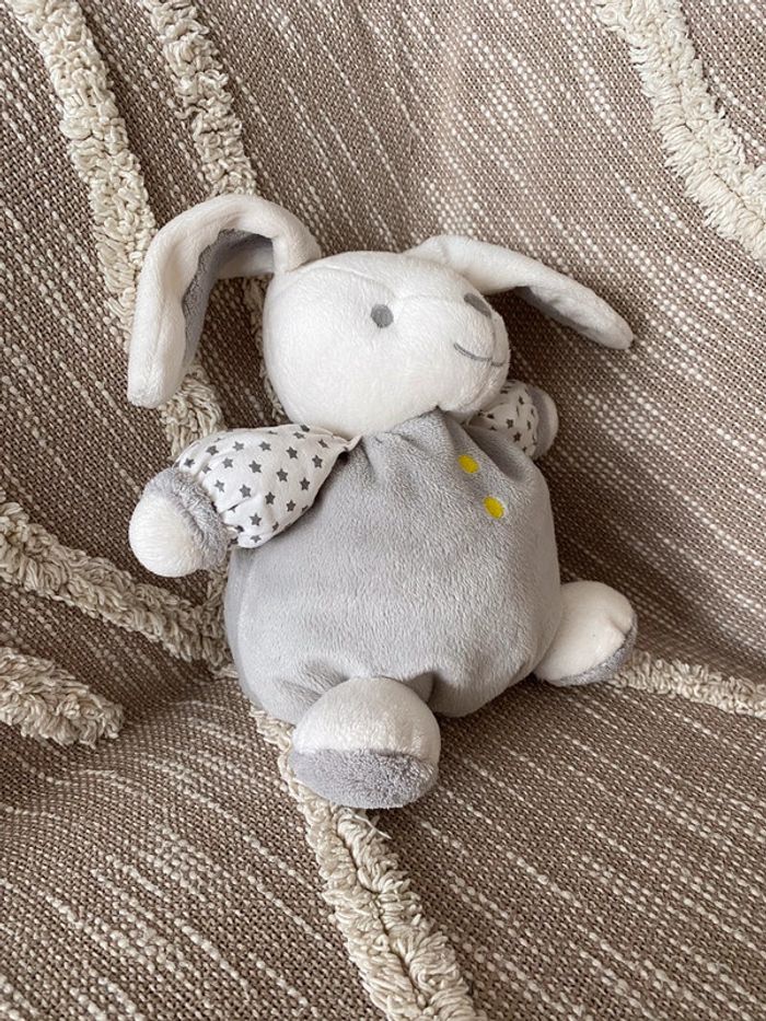 Peluche doudou boule 22cm Obaïbi lapin blanc et gris étoile très bon état - photo numéro 1