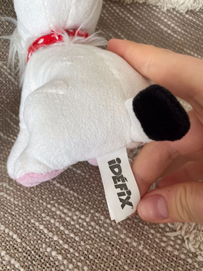 Peluche doudou 18cm Astérix et obélix chien idefix blanc et bandana rouge à pois parfait état - photo numéro 4