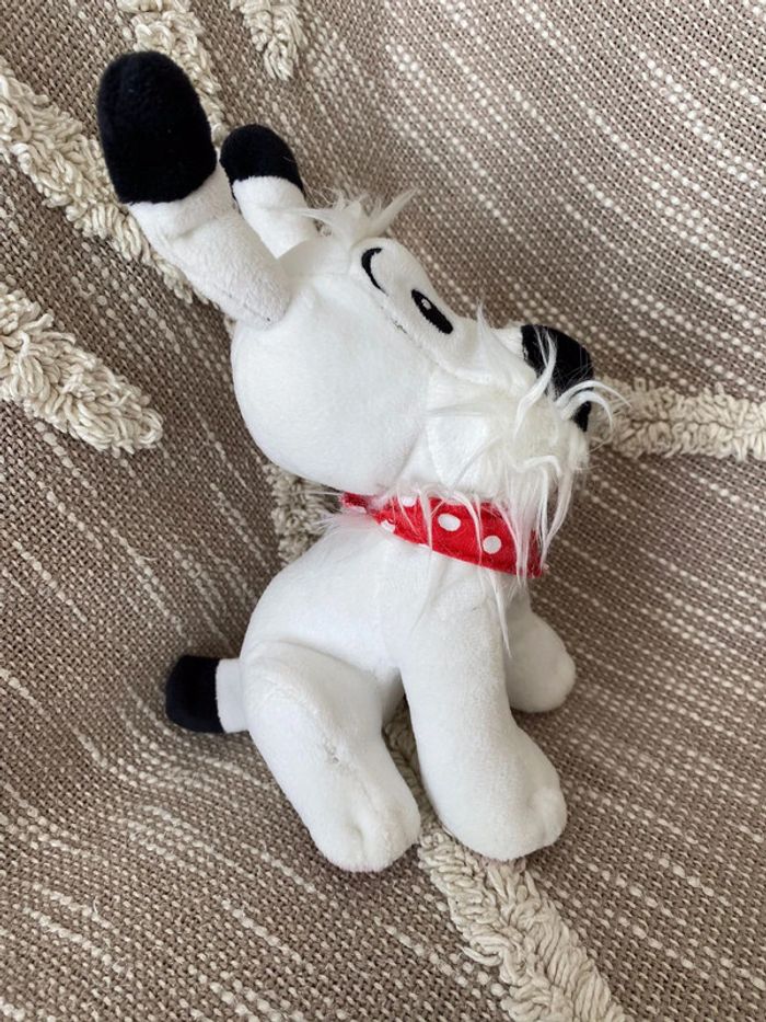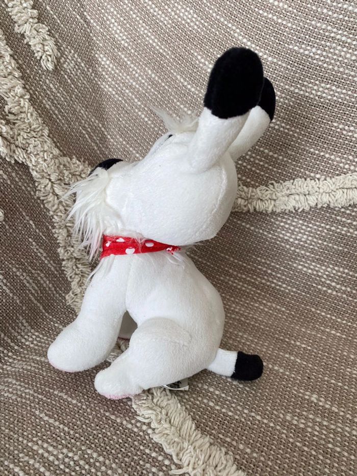 Peluche doudou 18cm Astérix et obélix chien idefix blanc et bandana rouge à pois parfait état - photo numéro 2