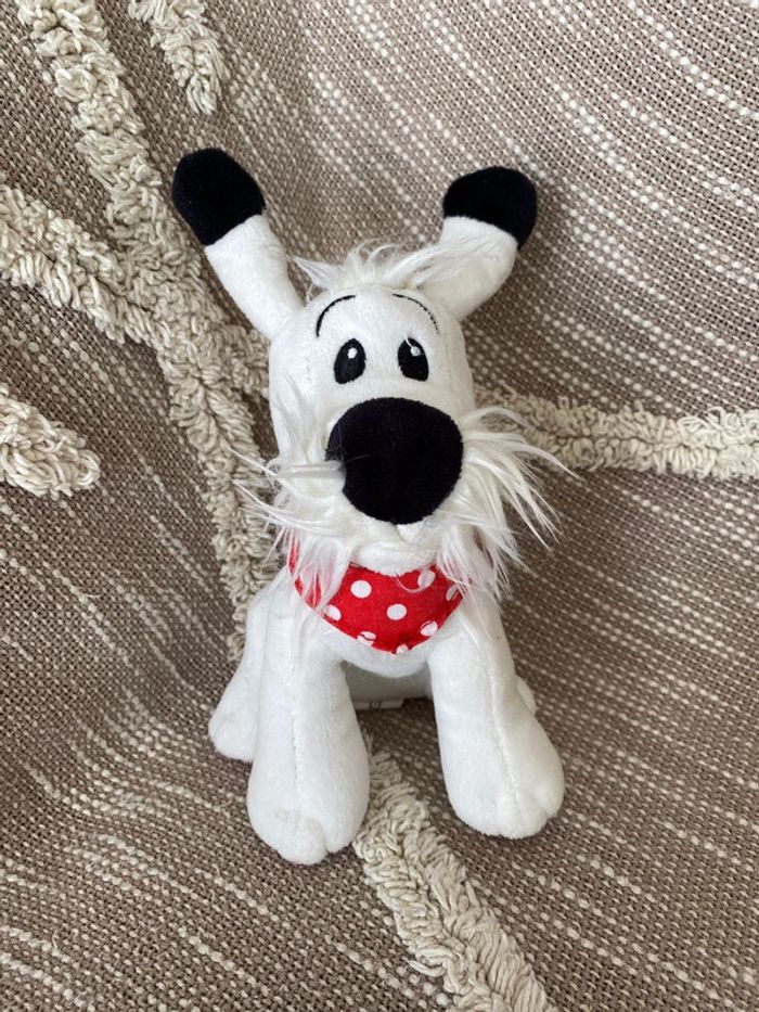 Peluche doudou 18cm Astérix et obélix chien idefix blanc et bandana rouge à pois parfait état - photo numéro 1