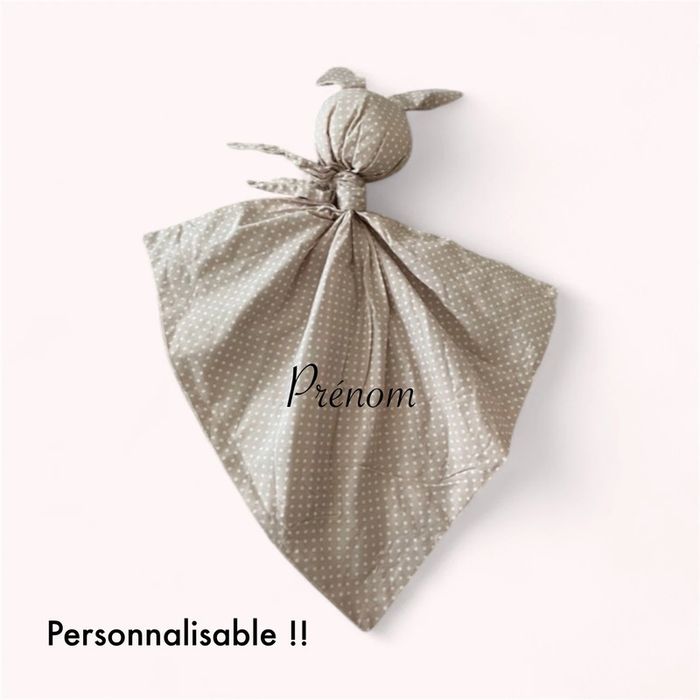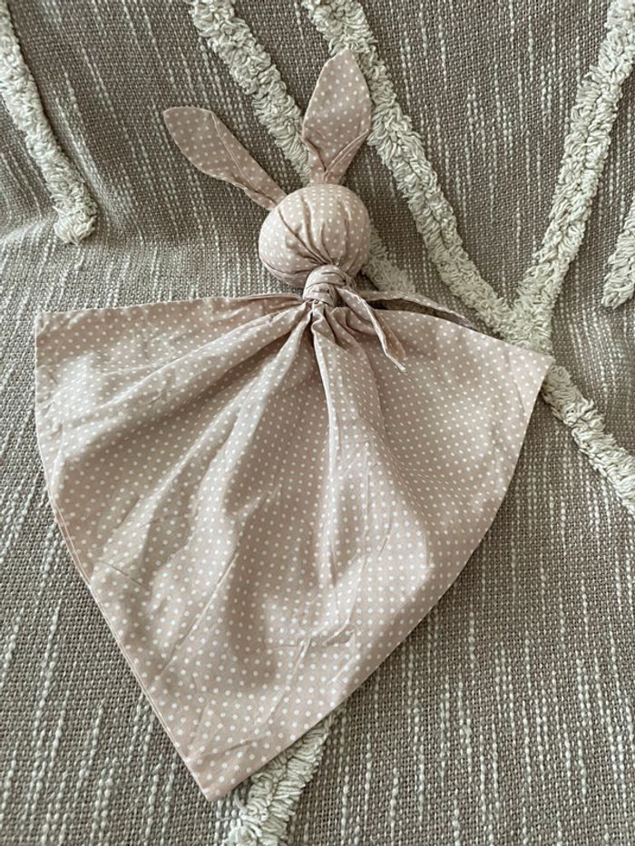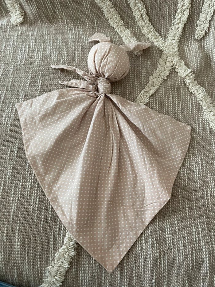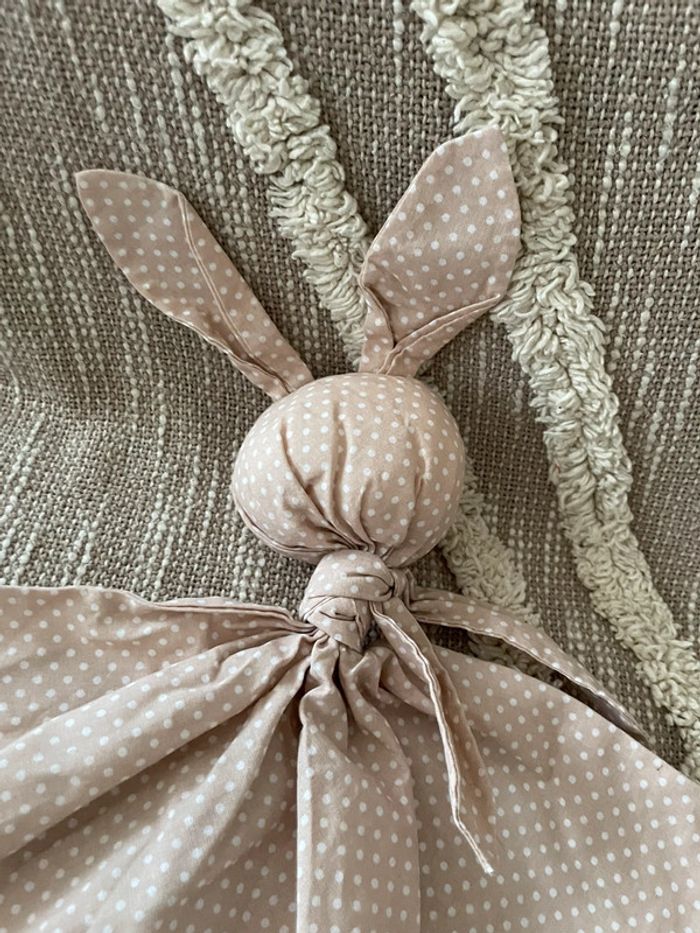 Peluche doudou plat 38cm fait main Coton Gabin le lapin à pois beige taupe très bon état