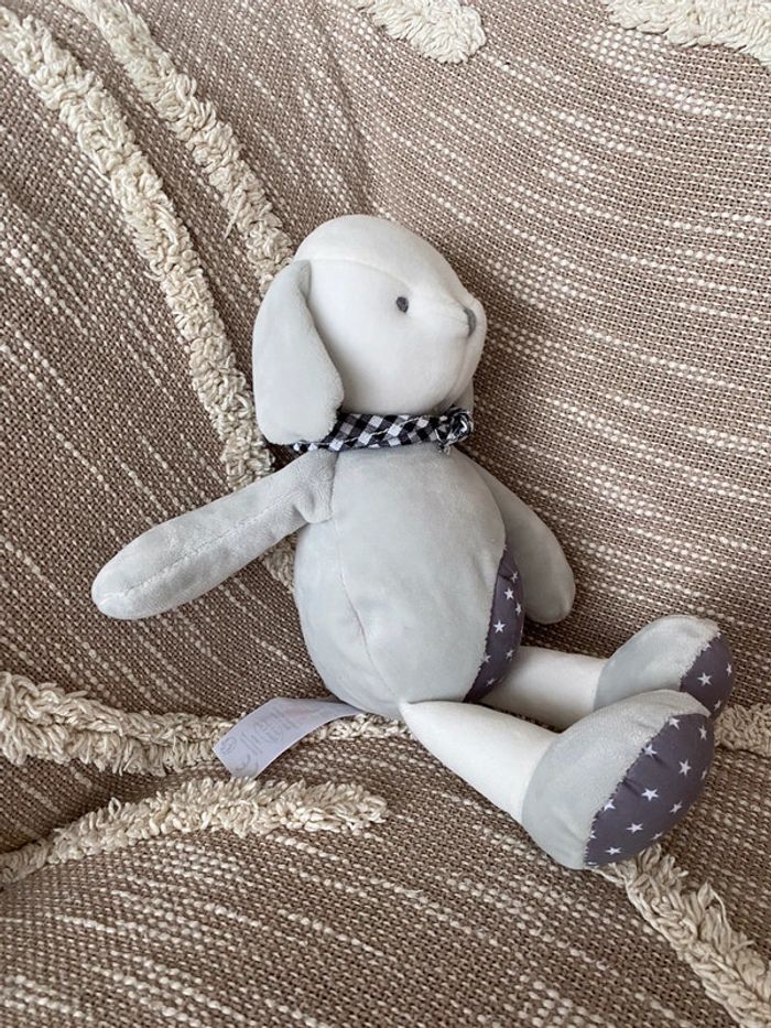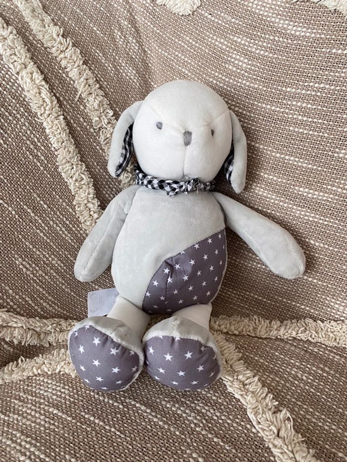 Peluche doudou 33cm Tom et kiddy chien blanc et gris bleu étoile carreaux parfait état - photo numéro 1