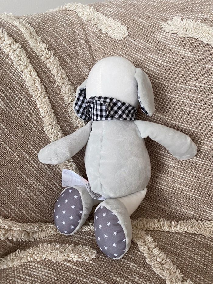 Peluche doudou 33cm Tom et kiddy chien blanc et gris bleu étoile carreaux parfait état - photo numéro 4