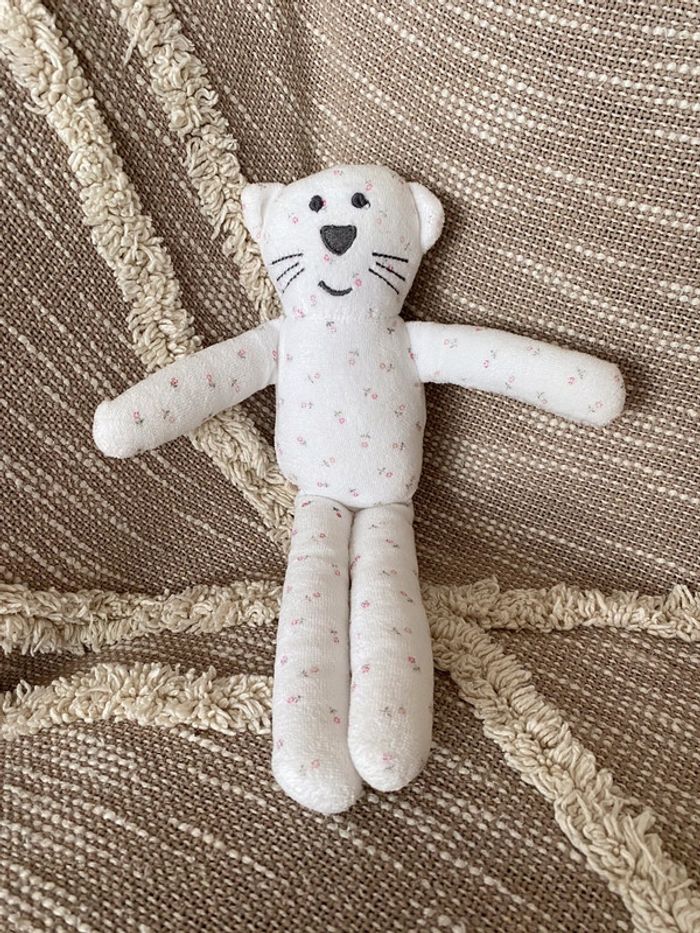 Peluche doudou 30cm bout chou ours blanc à fleur rose très bon état - photo numéro 1