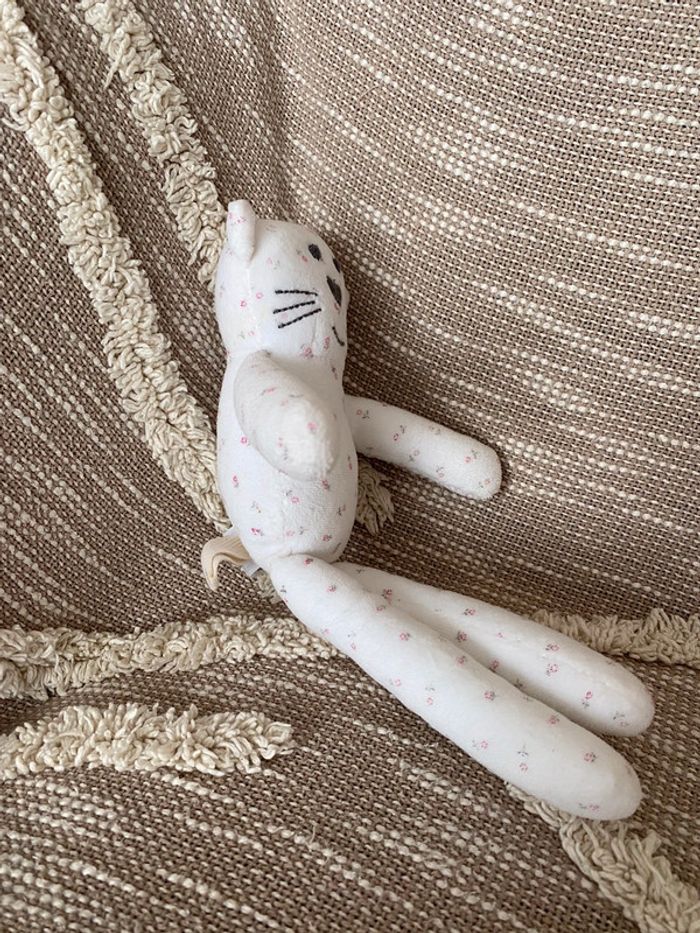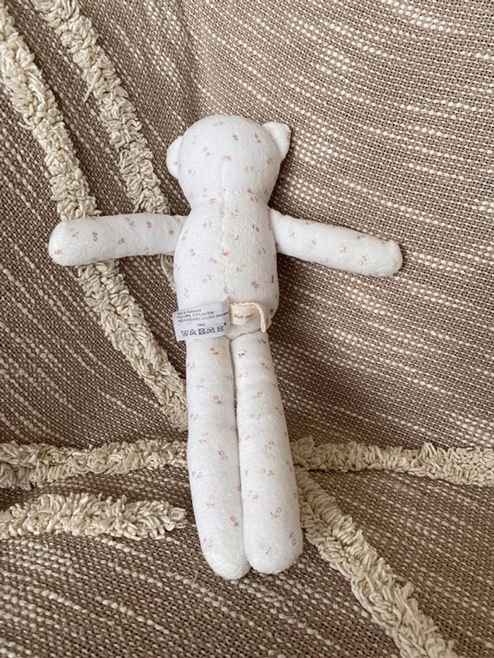 Peluche doudou 30cm bout chou ours blanc à fleur rose très bon état - photo numéro 2