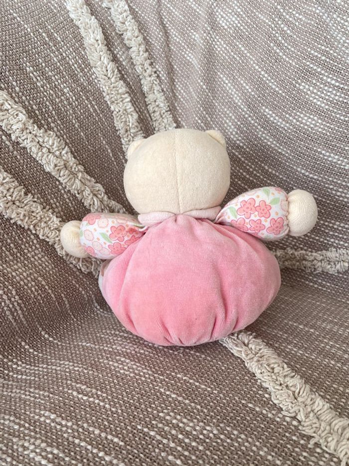 Peluche doudou 17cm kaloo chat rose et blanc à fleur très bon état - photo numéro 4