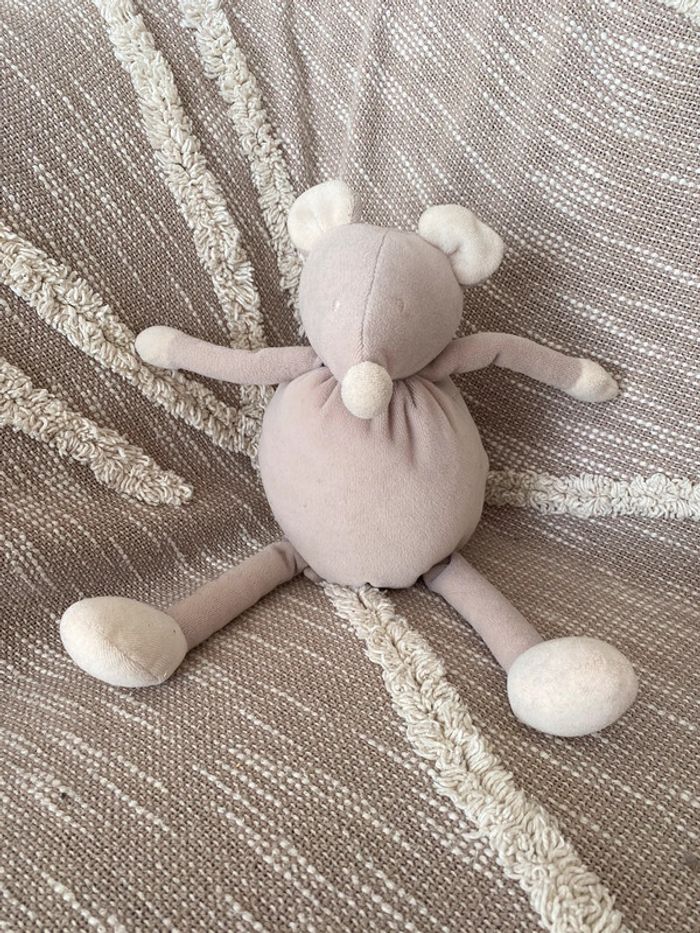 Peluche doudou musical 32cm moulin roty souris marron crème beige parfait état - photo numéro 1