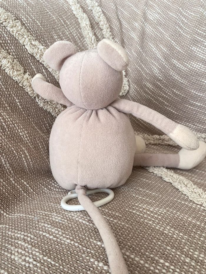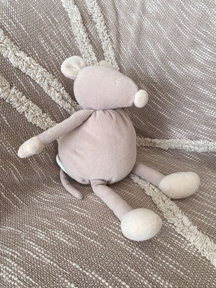 Peluche doudou musical 32cm moulin roty souris marron crème beige parfait état - photo numéro 3