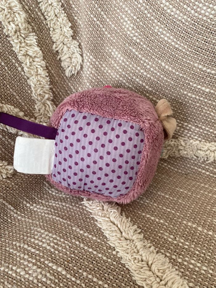 peluche carré d'éveil 10cm Moulin Roty Les jolies pas beaux chien vert et violet très bon état - photo numéro 3