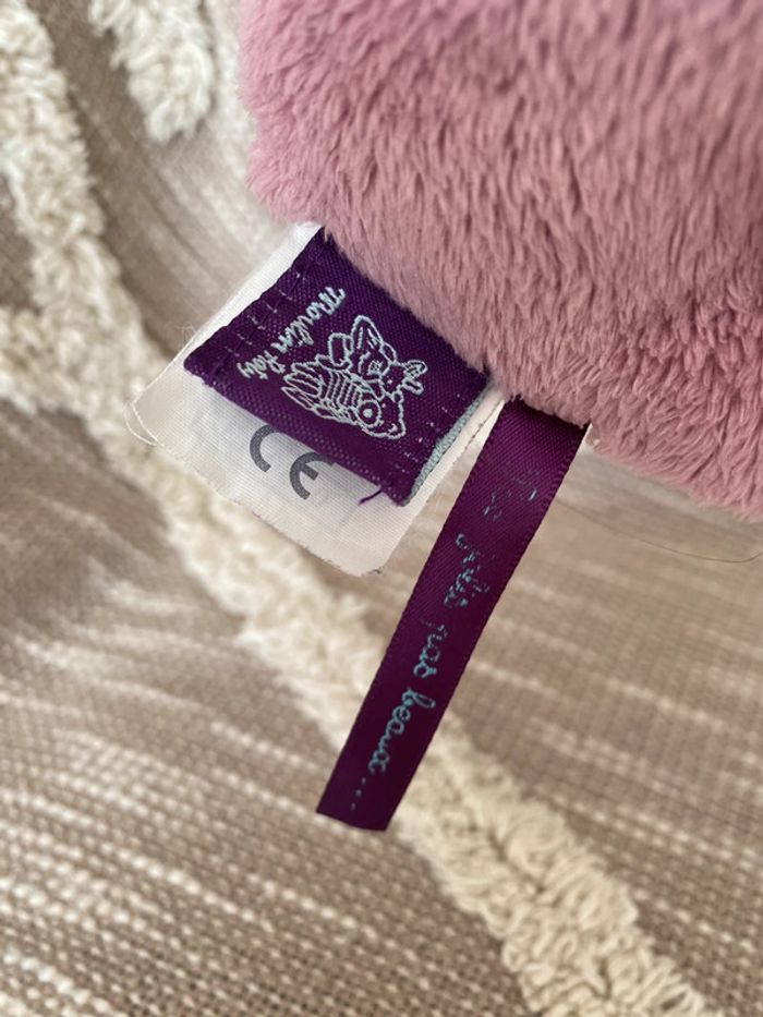 peluche carré d'éveil 10cm Moulin Roty Les jolies pas beaux chien vert et violet très bon état - photo numéro 2