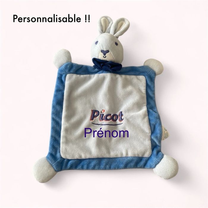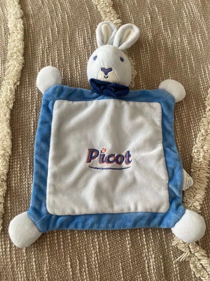 Peluche doudou plat 26cm picot lapin bleu très bon état - photo numéro 1