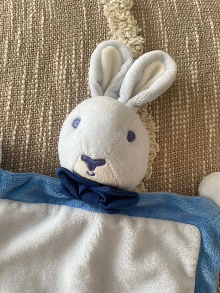 Peluche doudou plat 26cm picot lapin bleu très bon état - photo numéro 3
