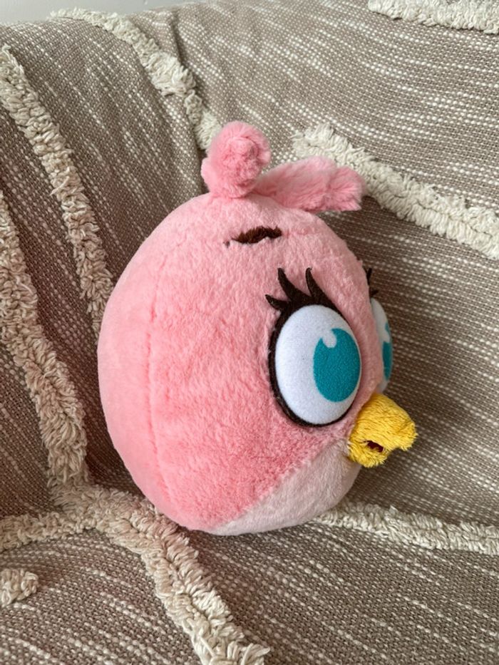 Peluche ronde angry birds oiseau rose stella très bon état - photo numéro 1