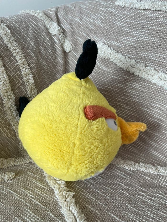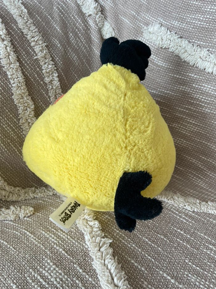 Peluche coussin angry birds chuck poussin oiseau jaune et noir parfait état - photo numéro 4