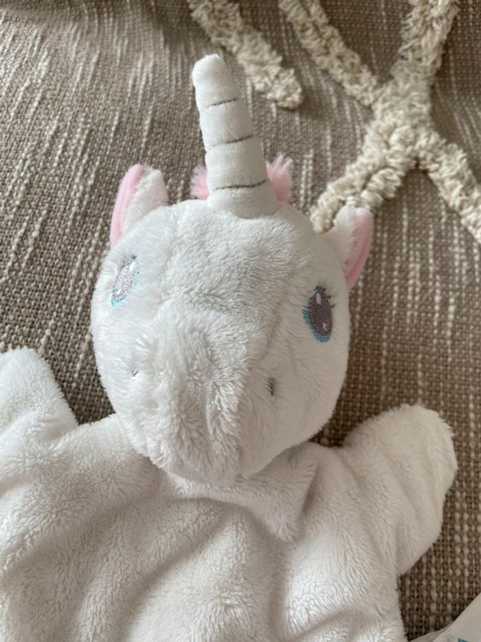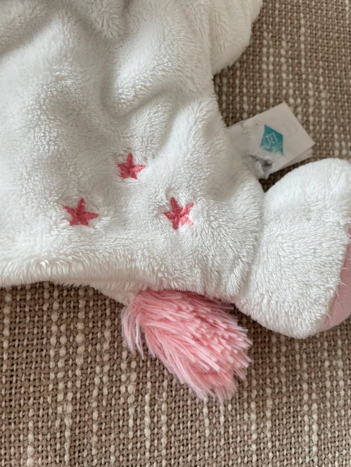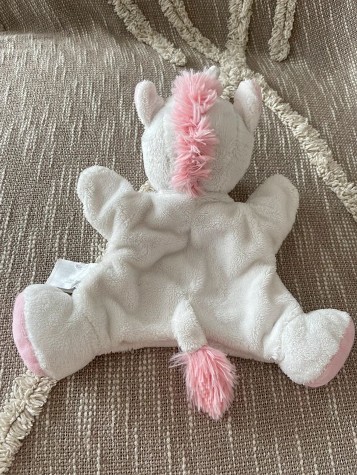 Peluche doudou marionnette 24cm tex licorne blanche et rose étoile très bon état - photo numéro 4