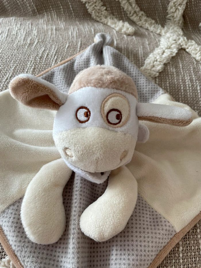 Peluche doudou plat 22cm mots d’enfants Mouton beige blanc parfait état - photo numéro 3