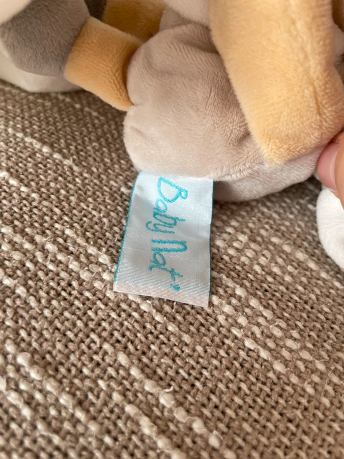 Peluche doudou mouchoir 16cm Babynat ours marron blanc gris beige très bon état - photo numéro 6