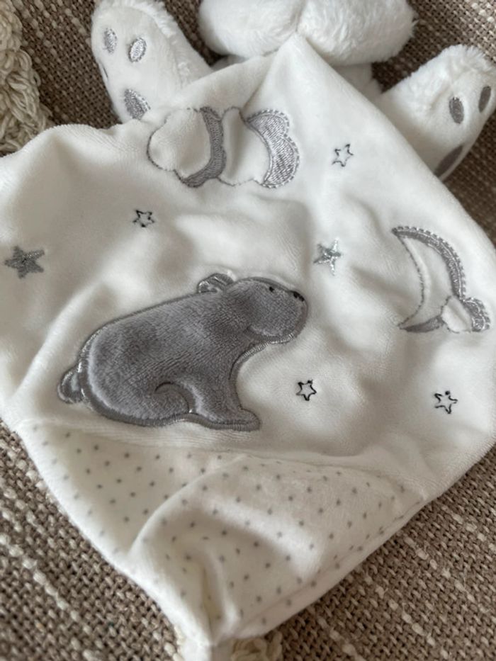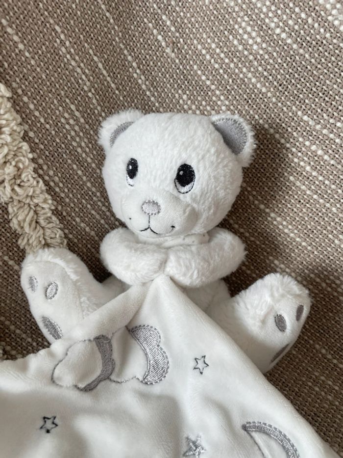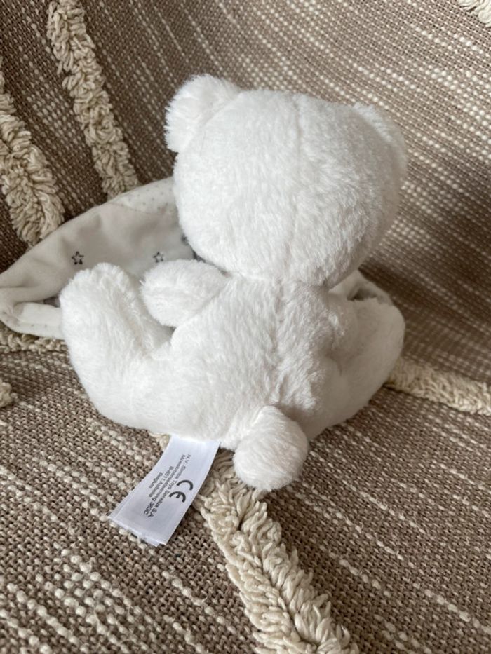 Peluche doudou mouchoir 17cm Simba toys ours blanc et gris étoile parfait état - photo numéro 6