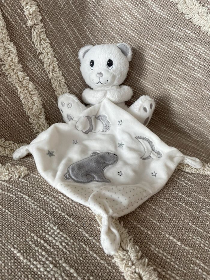 Peluche doudou mouchoir 17cm Simba toys ours blanc et gris étoile parfait état - photo numéro 1