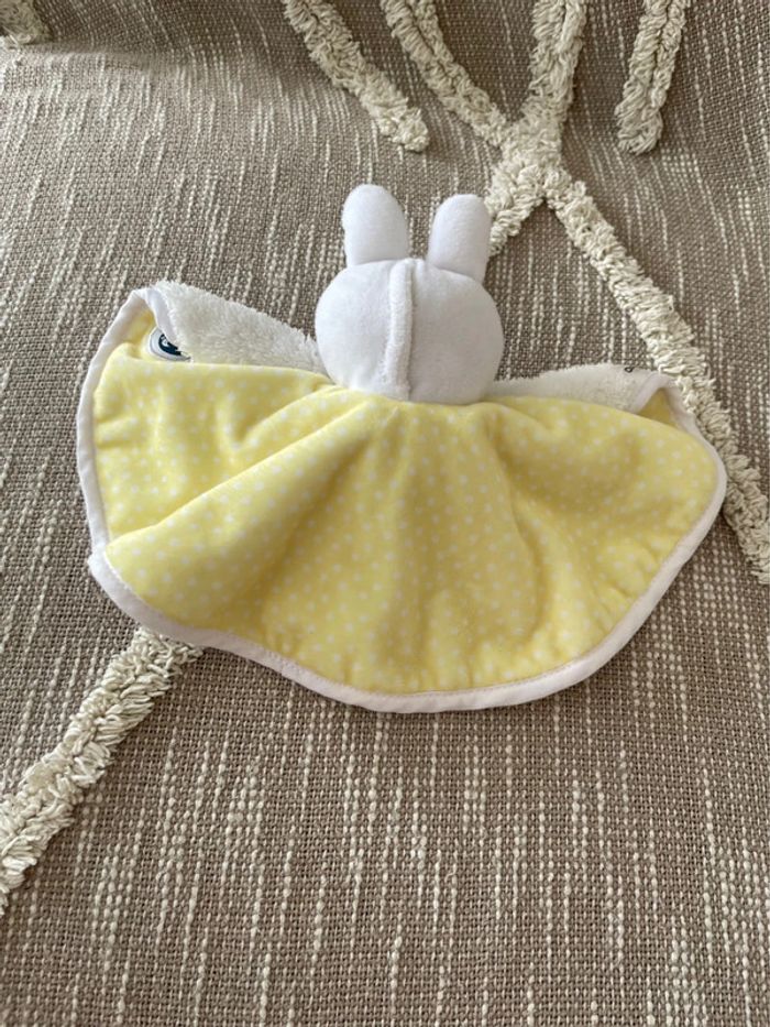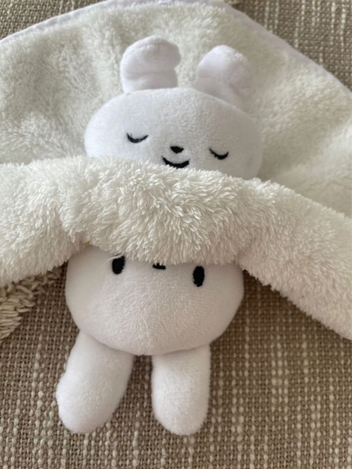 Peluche doudou plat sommeil 29cm claessens’kids lapin jour nuit blanc très bon état - photo numéro 5